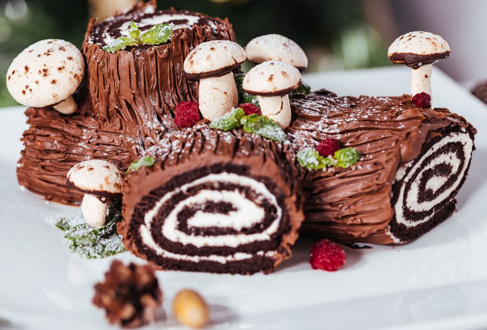 Διακοσμούμε με μαρέγκες, ζαχαρωτά ή «μικρά μανιτάρια» από μαρέγκα.